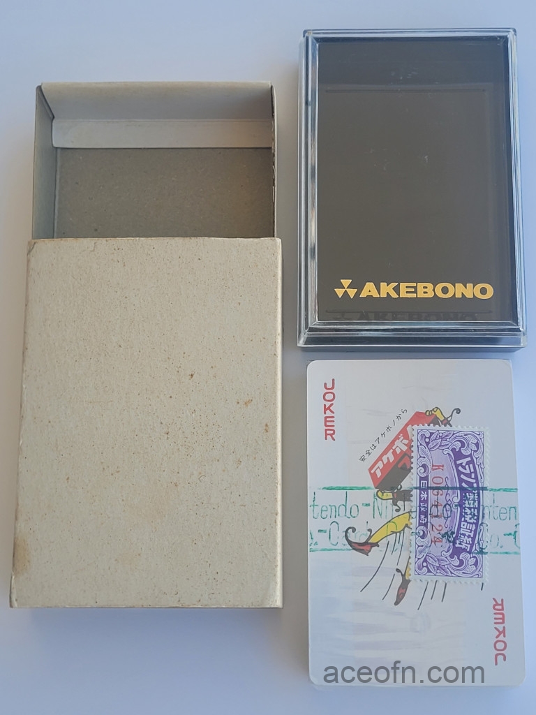 Joker with the writing アケボノ フレーキ (Akebono Brake) and the slogan 安全はアケボノから (Safety Comes from Akebono).
