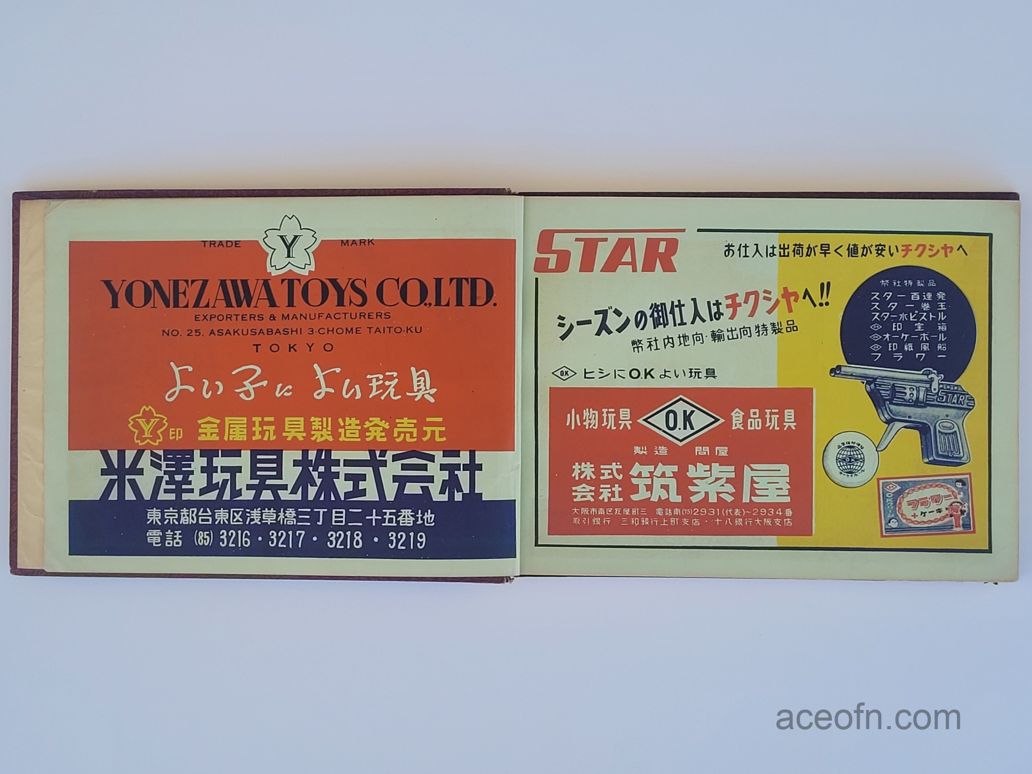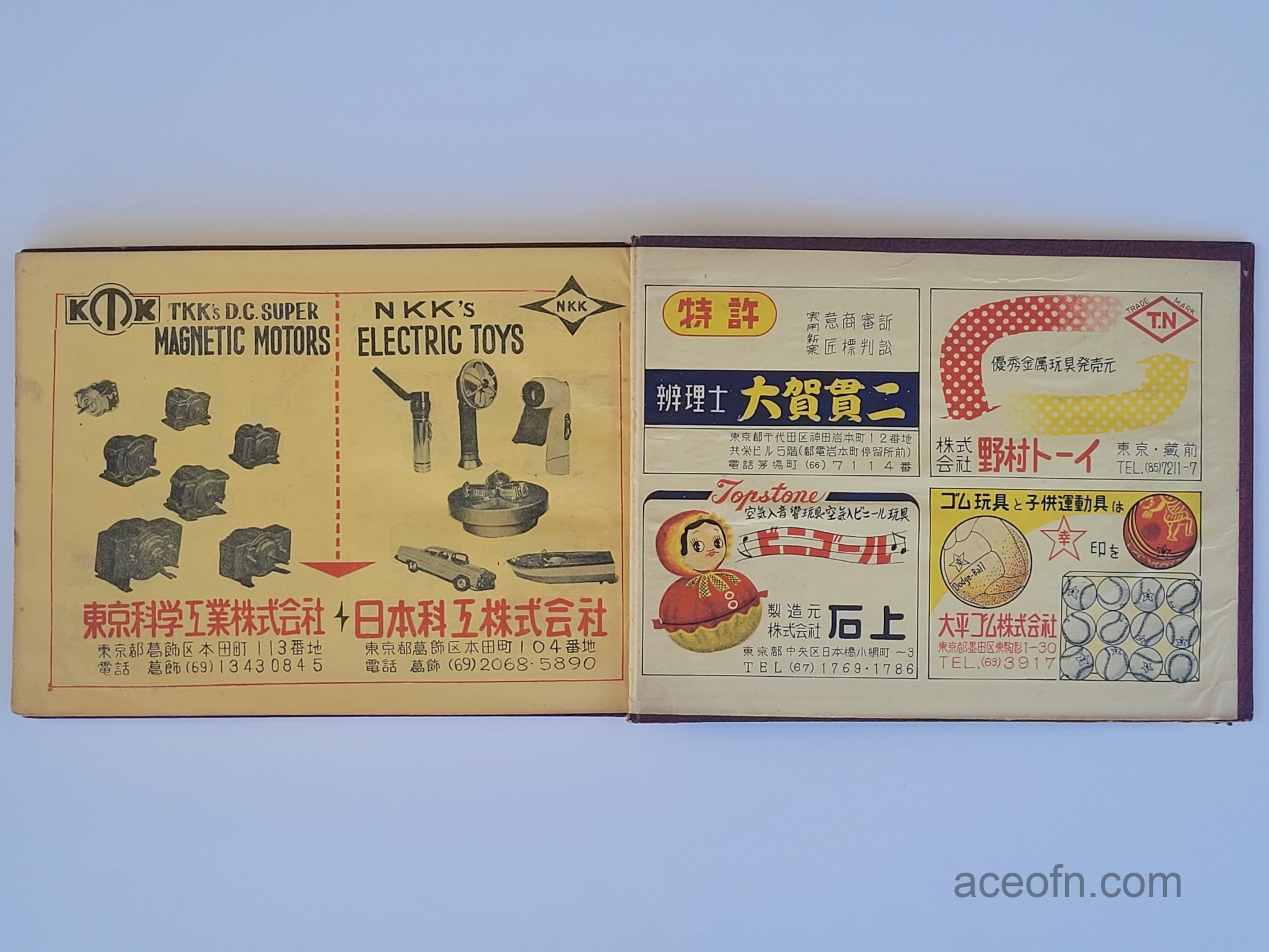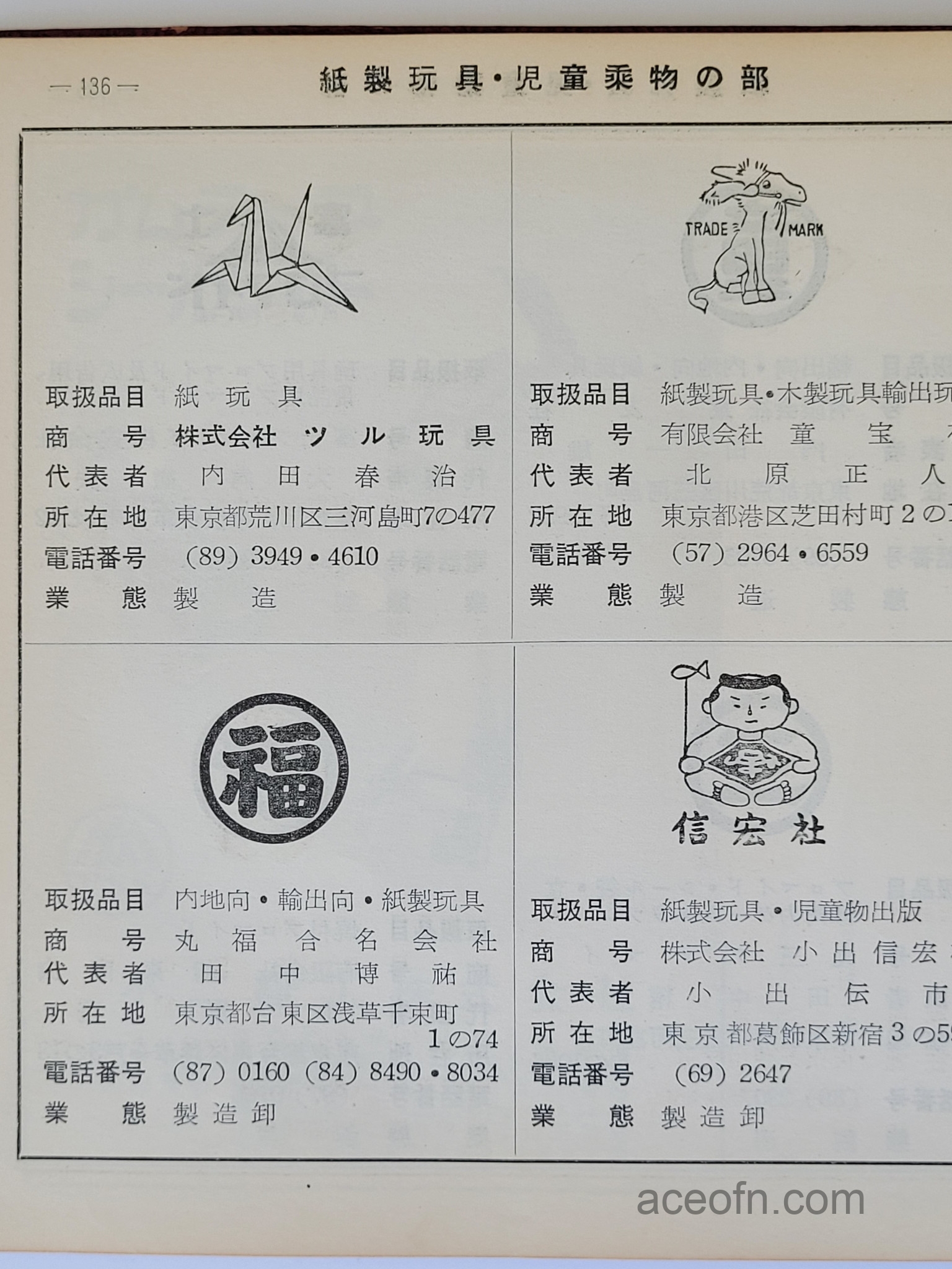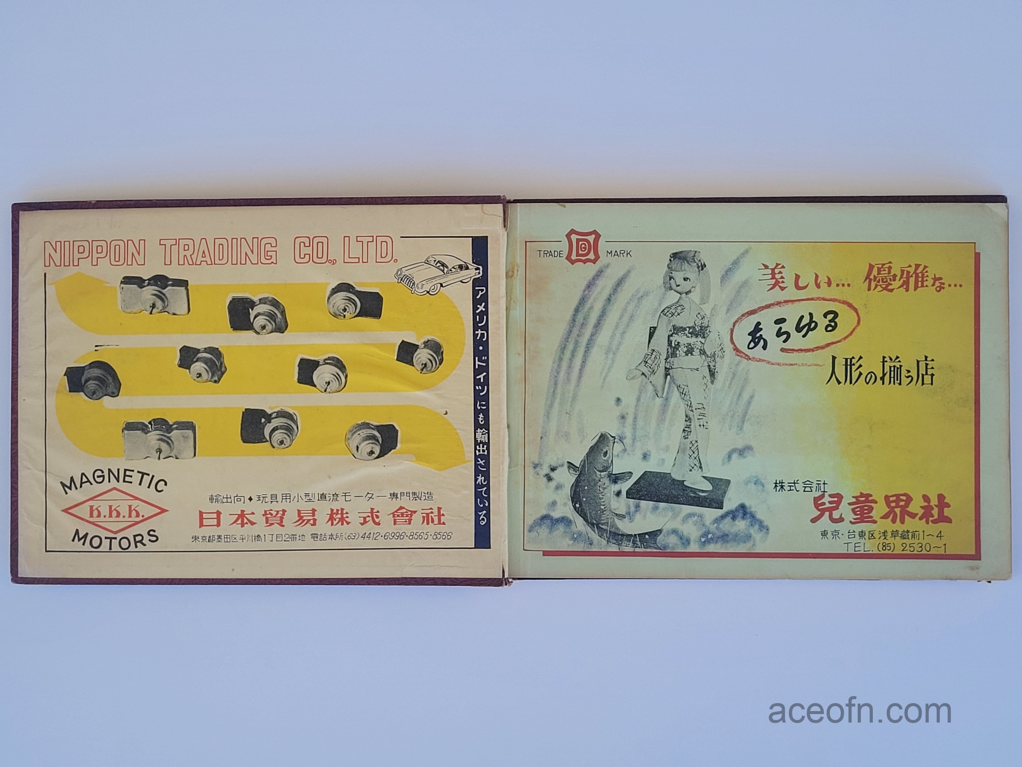 The cover says 1956年 全国玩具人形商標総覧 (which can be translated as “1956 National Toy and Doll Business Directory”), but it also has an English title which is “Toy & Dolls Mark in Japan”.