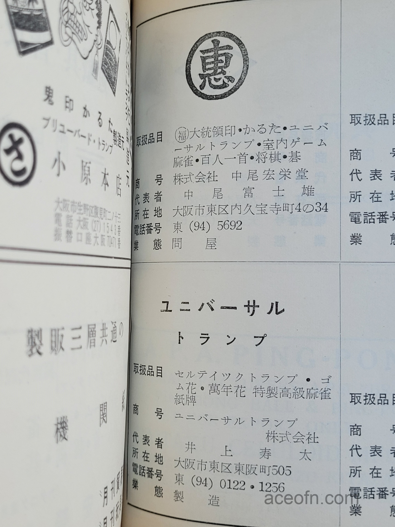 It contains many advertisements for toy stores of the time, including those selling hanafuda and playing cards. Among the latter, a store advertising Nintendo playing cards is visible toward the middle of the volume.